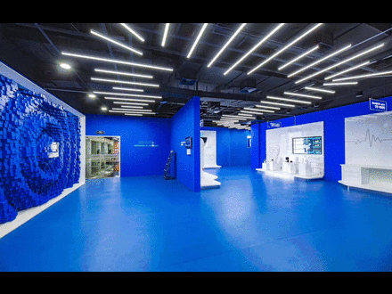 我们在展厅打造了一个虚拟超算中心,真的很未来风,这些加速度跳跃的灯光,像未来的璀璨星光,有种置身星辰大海的梦幻感。