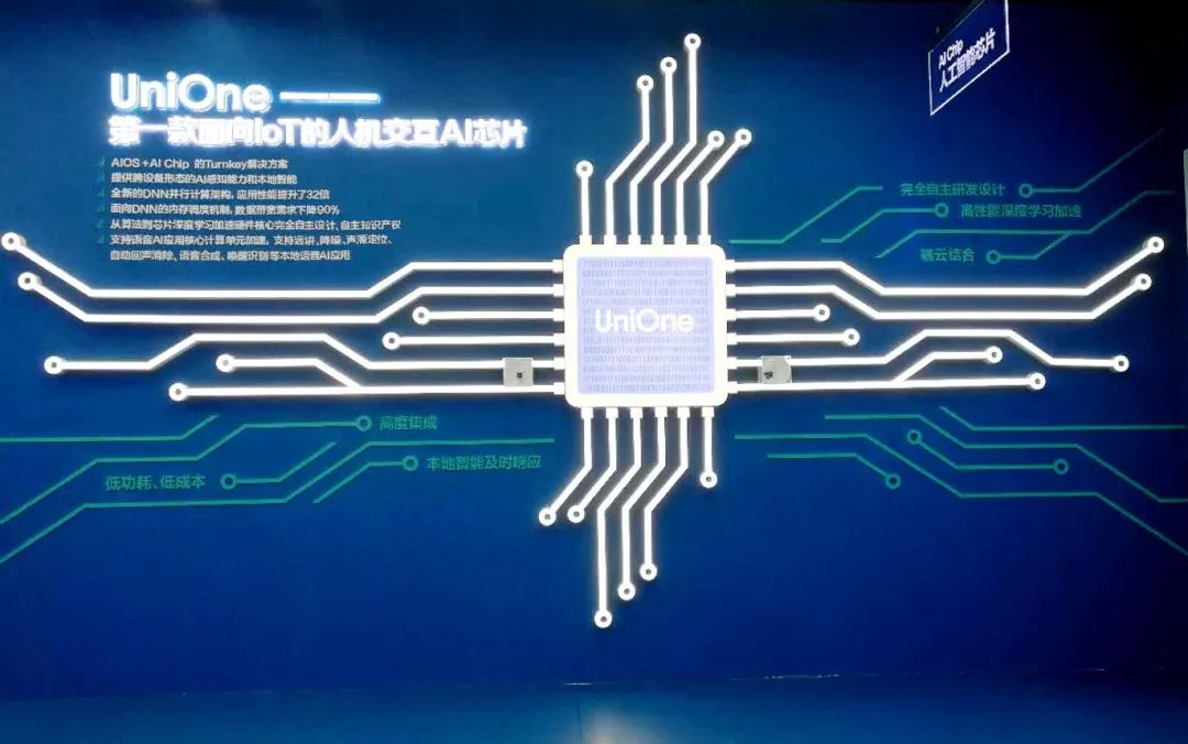 芯片展示区展示了云知声的全球首款面向 IoT 的 AI 芯片,三年前,距离人工智能风口十万八千里的时候,我们就开始了芯片研发道路,今年5月份发布后,不少伙伴都对它动心了。
